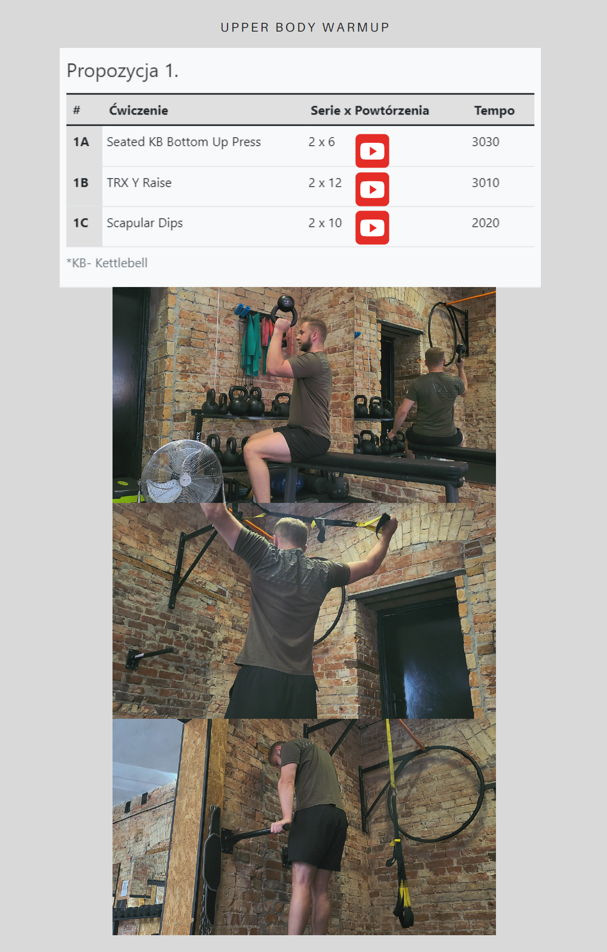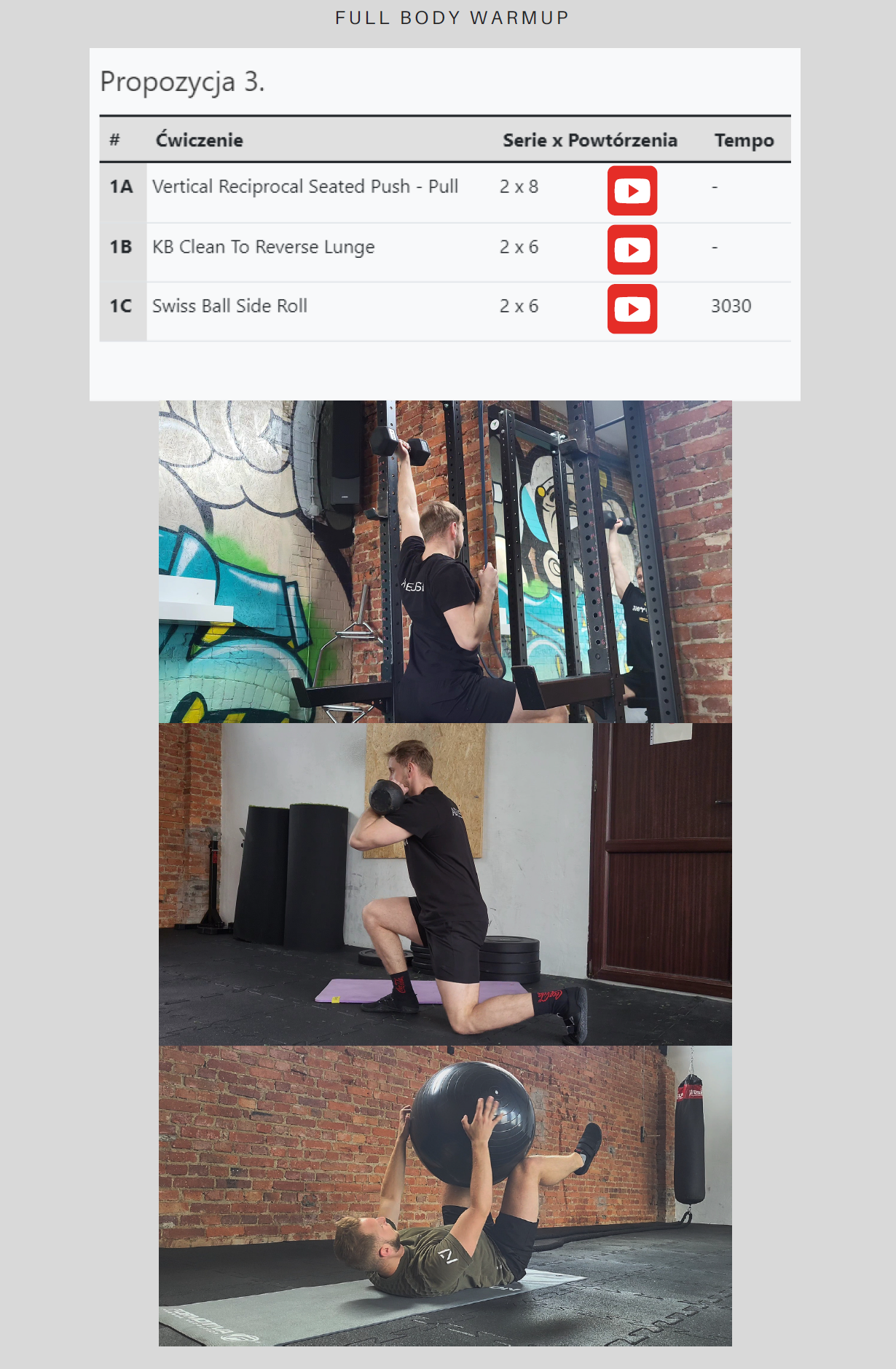 ✔️ rozgrzewki na górę ciała, dół ciała i full body